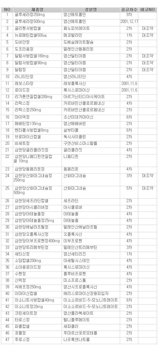 »ïõ´ç ÀǾàǰµ¿µî¼º È®º¸ ǰ¸ñ ¸®½ºÆ®